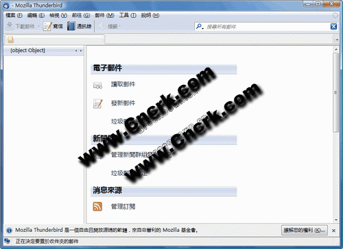 Mozilla Thunderbird V8.0 Final 繁体中文绿色便携版 Mozilla Thunderbird 是经过对 Mozilla 的邮件组件的进行重新设计后的产品,其目标是为那些还在使用没有整合邮件功能的单独浏览器或者需要一个高效的邮件客户端的用户提供一个跨平台的邮件解决方案.另外,由于完全专注于单独邮件客户端的开发,开发者可以摒弃其他那些不需要的组件,尽最大可能把这个客户端程序做完美.与以前作为Mozilla浏览器的邮件组件的时候相比,现在这款单独客户端程序的界面要整洁许多.