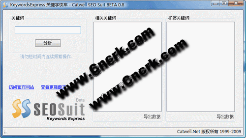 关键词分析工具KeywordsExpress是免费SEO工具包SEOSuit的一个工具,此次作为单独一个工具在SEOSuit发布前单独发布,该工具能根据你希望的关键词自动搜索热门的相关关键词,并可以不断进行扩展搜索,以达到从一个基本词根扩展到各种长尾关键词的目的,该关键词分析工具为免费软件。