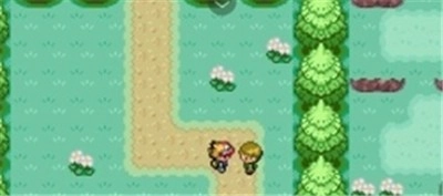 7、在华蓝市右侧往下走,能看到一个培育屋。继续往下走,进门会受阻,但出门后从左边进去,就能到达宝可梦乡。