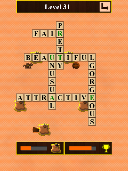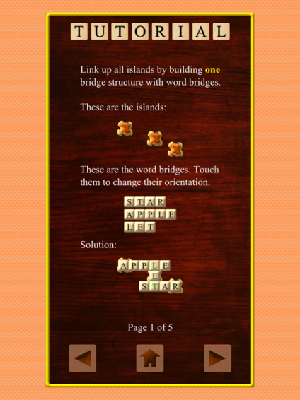 连接了所有的岛屿通过建立桥梁的话。通过在普通/共享字母(即像一个填字游戏)重叠连接它们的话。你必须使用所有给定的话,你只能建立一个互连的桥梁结构。你能解决40个级别的心态弯曲填字游戏?