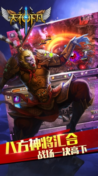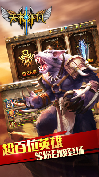 《天神下凡》是一款采用最新的Unity引擎,配合创新性的游戏设定而开发的一款3D大型动作卡牌手游。在完善的故事架构基础上,汇集了近百位独具个性的神话英雄,集精致的角色,恢宏的场景,丰富的策略,多样的玩法,精妙的操作感于一身,极富吸引力的全新强PK系统及公会玩法,未来的卡牌式MMORPG将为您带来极致的畅玩体验。【游戏特色】