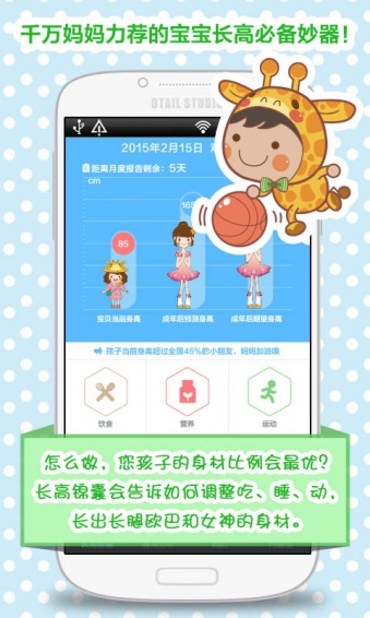 长高啦app是一款针对1-15岁儿童身高生长的五大影响因素,权威的儿童健康保健专家及儿保医生根据您孩子的情况,给出专属您自己孩子的长高方案,家长根据专家推荐的饮食、睡眠、运动等方案,有效的管理孩子的生长环境,换来孩子切实的长高体验!