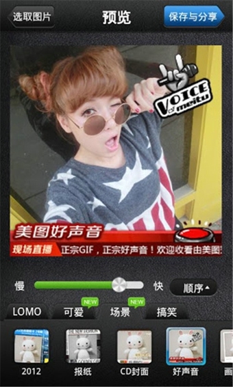 新增“好声音”场景边框。正宗GIF,正宗好边框;新增“Happy”可爱边框。让你成为快乐的焦点!