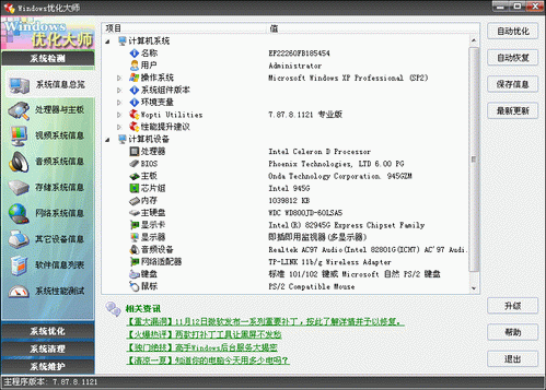 Windows优化大师是一款功能强大的Windows系统辅助软件,它提供了全面有效且简便安全的系统检测、系统优化、系统清理、系统维护四大功能模块及数个附加的工具软件。