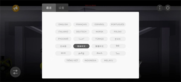 2、首次进入的玩家,可选择右上角的设置选项,对语言进行设置。