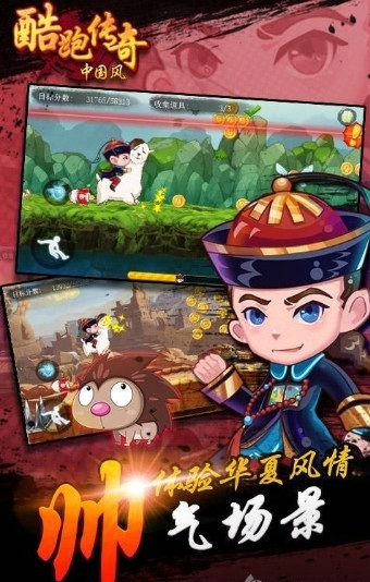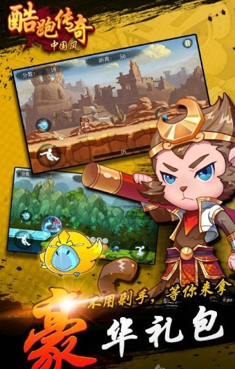 横版中国风多变场景游戏采用卡通的人物造型+中国风元素的设计风格,在如今跑酷普遍采用韩系Q版风格下可谓独出一辙,多变的场景随着关卡不断变化,视觉不会感到单一和疲劳,一会畅游在黄山的怪石、温泉、云海,一会又狂奔在敦煌酷跑崎岖壮观的山路上,这种感觉真是太爽了。