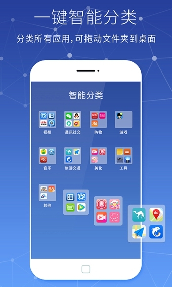精确的智能分类算法,快捷帮你整理好乱乱的应用图标,还可以添加到桌面,进行个性化的整理。