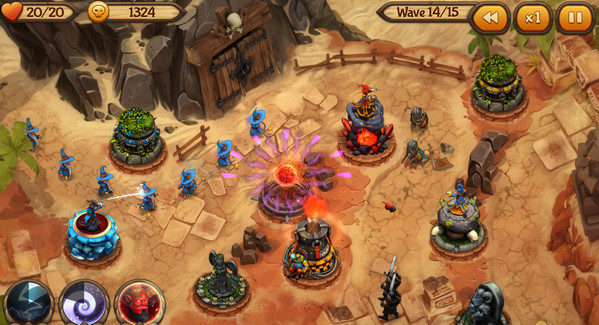 《邪恶捍卫者》允许玩家率领恶魔大军来驻守自己的土地,抵御讨厌的人类入侵。游戏任务分为5个独立的区域:高地,荒地,森林,岛屿,地狱。共6个难度模式,15个地图,以及90个关卡。有大量的技能可以升级你的防御塔,从而释放不同的魔法来击退敌人。每张地图都独具特色,针对每一个任务都有数不尽的策略和技能选项任你选择。再加上高质量的画质和简单明了的控制系统以及令人沉迷的原声音效,一切都棒极了。而且它还是免费的哦。骚年们,你们还能hold住么?【游戏特色】