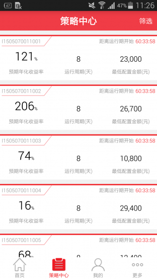 【海量优质策略】资配易提供的投资策略模板均由大数据机器建模的方式生产,比人为组合的投资策略更加科学、更加优秀。投资人无需专业知识,也能轻松筛选出符合自身风险收益偏好的投资策略。