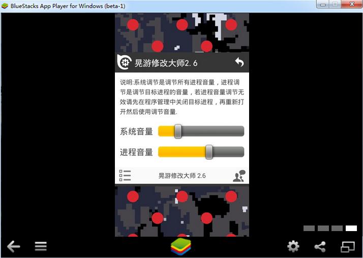 晃游修改大师(修改器)针对天天酷跑等游戏非常有用,一下子就媲美了烧饼和八门和葫芦侠,操作界面也非常的简单。该软件通过修改正在运行的游戏的内存数据,达到修改安卓系统内存中的金钱,血量,得分,道具数量等参数值。最新版本主要功能:游戏修改、进程管理、音量调节、一键截屏、速度调节,脚本录制、插件应用并附带攻略秘籍。旨在为广大手游玩家提供一个更加便捷自由的手游工具。想要解放你的手机,请先ROOT哦!key words:晃游修改大师,游戏修改器,手游辅助,游戏破解版,游戏外挂,晃游,晃游修改器【使用方法】