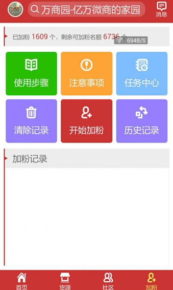 万商园微商神器9大功能!1:免费加百万精准客源,客源真实认证,精准有效!不再为客源发愁!主动加,被动加,突破微信单日加人限制,防止封号!