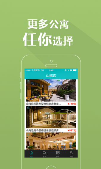 山海边app既为旅行者提供优质的度假新体验,又为业主提供了盘活闲置资产的托管增值服务。山海边现经营多样化的公寓、海景房、别墅、酒店等3万余套,合作景区200多个,合作商家和品牌近2000家,打通了食宿、景区、旅行社、航空公司、租车、绿色农庄等各个环节,真正实现旅行一条龙服务。