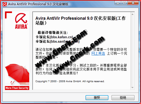 AntiVir(德国 小红伞)的个人的版本提供以免受到电脑病毒的侵害,有效的保护个人电脑以及工作站的使用。 它可以检测并移除超过 50,000种病毒,支持网络更新。