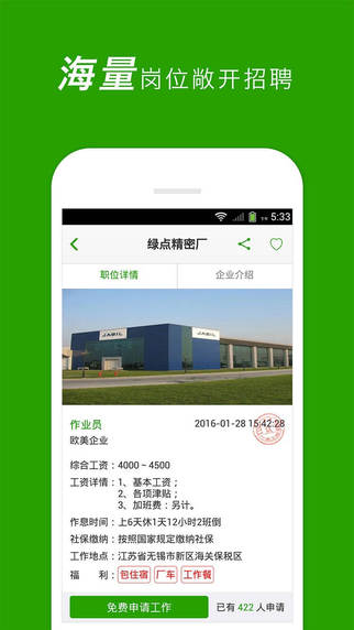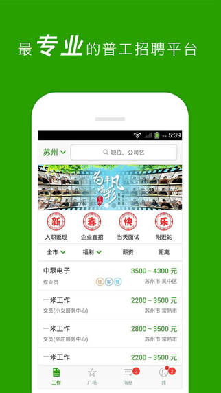 一米为您提供了上万个普工、操作工、作业员、技工、班线组长等工作岗位。我们实行严格的企业准入制度,一米工作客户端展示的招聘企业全部经过一米网络的实地走访和审查,薪酬福利真实可靠、工作环境安全放心。