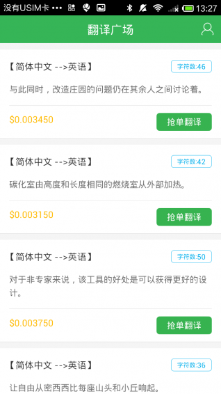 全民翻译是一款手机翻译应用工具。用户可使用全民翻译app进行翻译,可支持中、英文互译,并且翻译能力颇强的用户可通过全民翻译app提供翻译服务,从而从中获取收益。