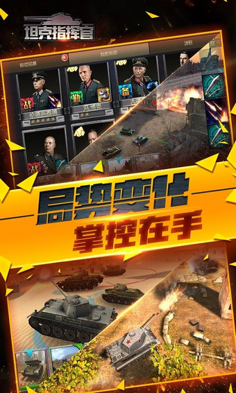 点划式全3D即时战争策略手游《坦克指挥官》。3D画面,坦克、建筑、人物均按实际还原,战斗特效逼真,战争时期的震撼场景再现。经典玩法,凸显出自有特色。通过升级基地、通关战役关卡等方式获取资源、强化装备,提高战斗力。玩家间即时交互,击败对手即可获取一定资源,被突袭后可复仇。也可以加入联盟与好友并肩作战。坦克培养外,将领的培养也相当关键。玩家获取将领后可将领派驻在作战部、后勤部、装备部,以实现提升整体战斗力、提升生产效率等功能,是改变战局的重要因素,更是游戏的一大亮点。即时战斗,火力四射激情来战!