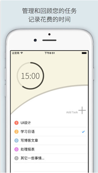 TodoList:写下待办事项,选择一个任务。长按调整顺序,左滑删除。PomoNow 会自动记录您在每个任务上花费的时间。