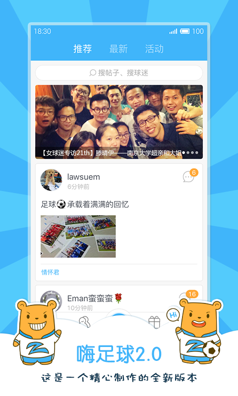 “嗨足球”(hisoccer)是一个High爆的足球社区!在这里,既可以加入各种草根、校园球迷会,也可以管理你们的赛程、球队、球员,还可以用积分竞猜你的比赛、兑换丰富的足球礼品。如果你是学生球迷,可以加入你学校的球迷会;如果你是草根组织,可以向我们申请属于你们的球迷会;如果你有点害羞,可以每天静静地赚取积分;如果你自信会玩,可以用照片DIY你的球迷海报;如果你是收藏控,可以用积分兑换你心仪的球队礼品;如果你是情怀君,可以每天和哔哔侠一起对足坛嬉笑怒骂;如果你热爱踢球,这里有最专业的战术和装备文章;如果你热爱看球,这里有可以聊通宵的足球话题;如果你是男生,那你的加入会让这里的男女比例接近1比1;如果你是女生,则很有可能成为我们《女球迷专访》的主角;无论你是谁,我们只希望让你感受到足球带来的快乐。