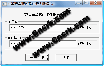只要选择好源程序文件点“开始处理”按钮进行处理,支持文件格式有c,c++,h,hpp,java