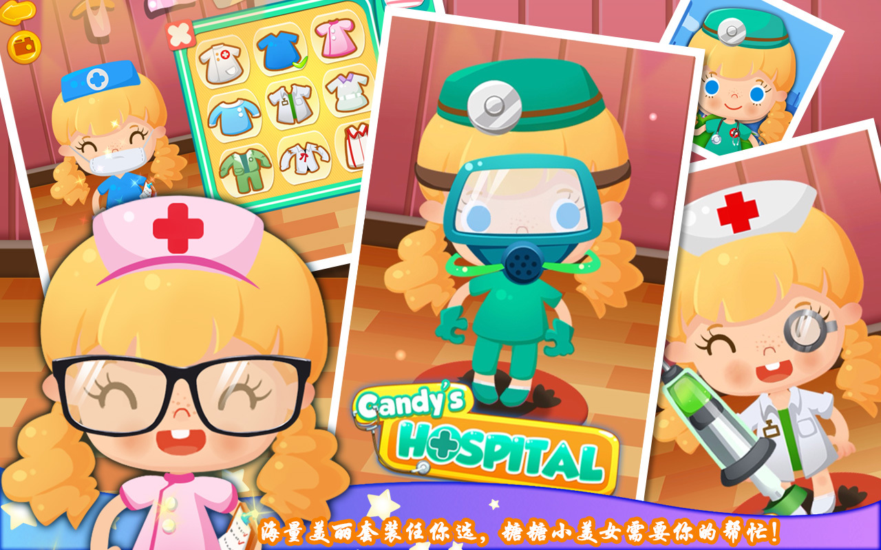 嘿,亲爱的小医生,最近天气多变,糖糖家族的很多朋友都生病了,这真让人担心呀。不过幸运的是,我们的糖糖新开了一家医院可以帮助大家恢复健康。这里有先进的医疗设备和舒适的环境,可以为病人提供优质的医疗服务。可是现在糖糖特别需要像你这样的专业医生来帮助她治疗病人,赶紧来帮忙吧,病人们都会很感激你的哦!【游戏介绍】