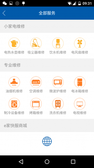 e家快服app是一款便捷的生活服务类软件。当您家里出现了电器故障,请不要着急,登陆e家快服app进行下单,即会有专业维修人员上门为您服务,城区24小时、乡镇48小时内完成维修。