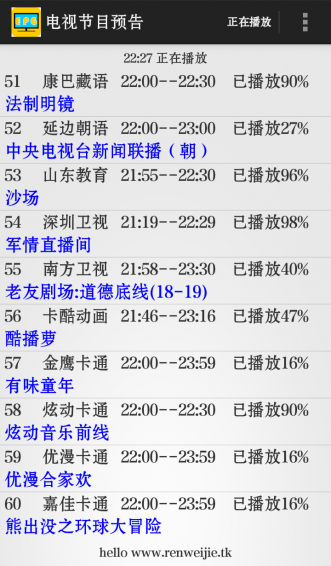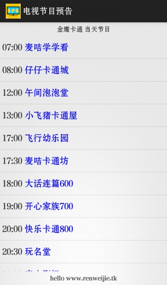 1,界面简洁明了,操作简单,无广告2,目前支持全国央视和卫视等60余家节目预告,后续还会增加