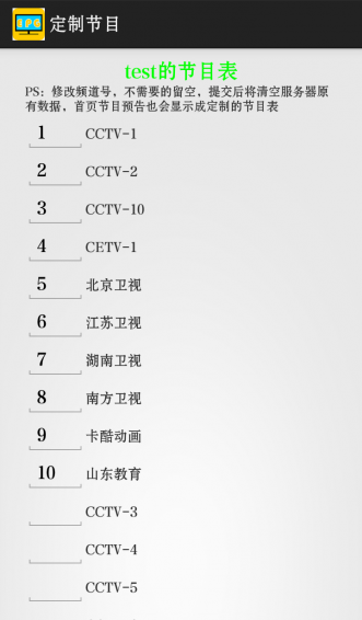5,可以按家里的电视节目顺序自由定制节目表(顺序,数量和频道号)