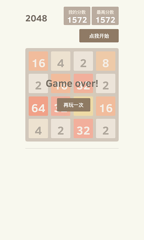 3、被加数移动要少(我通常都是放在最左上角,这样比较保险,如果计算能力特别强,这个到无所谓),用低级根创造高级根,且根要有连续性。举例:被加数到512时,你的图上最好要有256(之前使用低级根加上来的)、128、64、32。这样数字相加后留下的空间就多,就不容易结束游戏。所以这个游戏其实是一个靠「准备」通关的游戏,意思就是你凑出512之前不要急,先把各个根给凑出来。