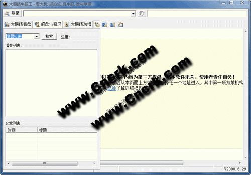 它是一款具有实时资金流与大单异动监测、高级指标智能选股、收看机构与名家实时解盘以及快速泡博等功能的全方位炒股协助软件。特色功能有: