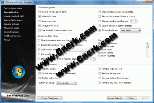 Ultimate Windows Tweaker是一款免费小巧的Vista系统优化工具,适用于32位和64位的Vista系统。只需轻点鼠标,就可以快速优化系统。Ultimate Windows Tweaker包含了超过130项的优化