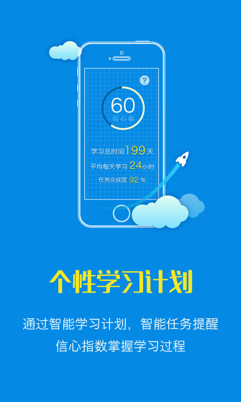 3.个性学习计划:智能的学习计划,任务提醒,信心指数来掌握学习过程。