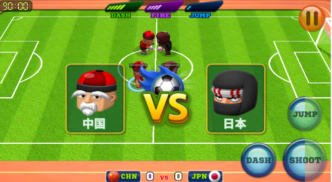男子足球是一款体育竞技类手游,这款游戏的玩法是双方各派一名守门员和一名球员,主要通过射门、猛攻、铲球、跳跃等4种进攻方式来赢得比分,从而获得最后的胜利。