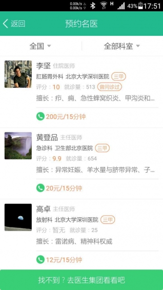 找名医,专家咨询,预约名医手术,术后康复,买好药,买真药等等会让您的健康恢复的更快,更好.细心体贴的医生助手给您答疑解惑,预约符合您疾病的专家,病人看病不再担心,专家就在身边,针对性地给病人个体化的治疗