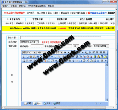 5、网络备忘录,任意电脑登陆就可以使用,让您上班、在家、出差、出国都能备忘录。
