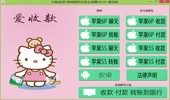 1:全网唯一一家一个软件包括微信对话生成器,支付宝转账截图生成器,微信收米转账截图生成器.