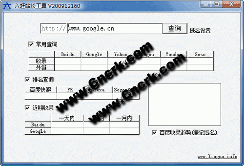 本工具可查询某网站的百度实时收录、百度快照、百度近期收录情况、google实时收录、google近期收录情况、PR,生成收录趋势图等。