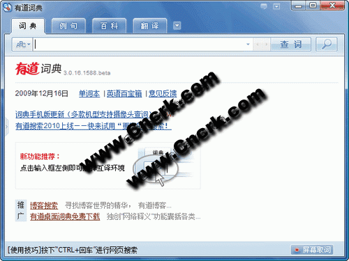 有道桌面词典结合了互联网在线词典和桌面词典的优势,除具备中英、英中、英英翻译、汉语词典功能外,创新的”网络释义”功能将各类新兴词汇和英文缩写收录其中,依托有道搜索引擎的强大技术支持及独创的”网络萃取”技术,配合以全面的OCR屏幕取词功能,为您提供最佳的翻译体验。