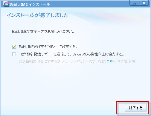 点击"終了する"完成安装!