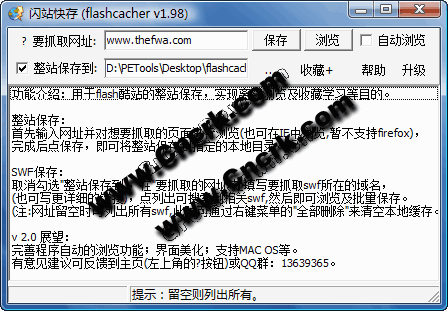 用于flash酷站的整站保存,实现离线浏览及收藏学习等目的。