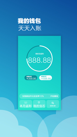 4、微钱包:查看总分红/每月分红,宝石,投资收益;并可在这里直接进行理财。