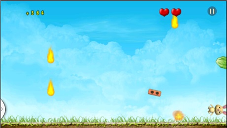 尽量回避炸弹和火焰,它们会对兔子造成伤害。受到一定次数以后则会导致游戏结束。