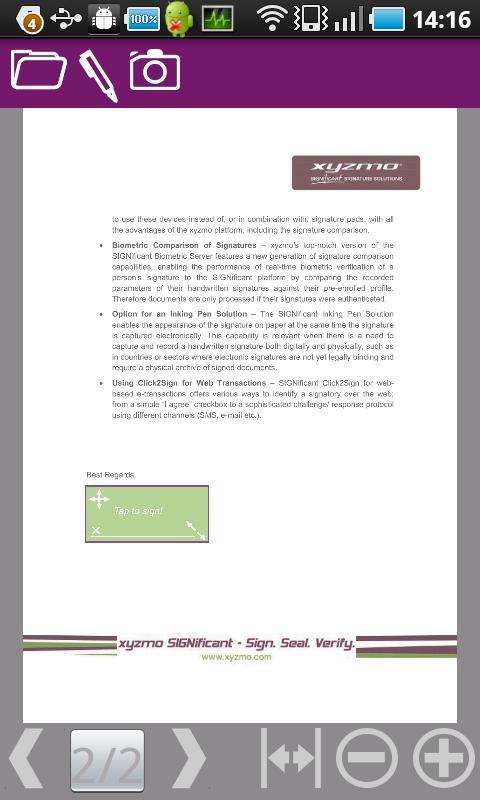 你可以从您的收件箱、SD卡中加载PDF文档,并添加您的手写签名。
