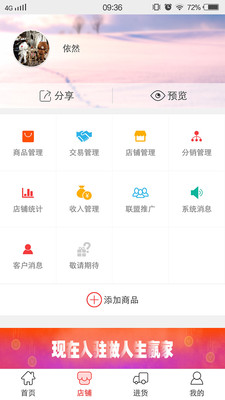 【零负担开店】零成本开店,轻松实现店铺管理,商品管理,订单管理。【无限级分销】分销管理支持两级内分销商统计。