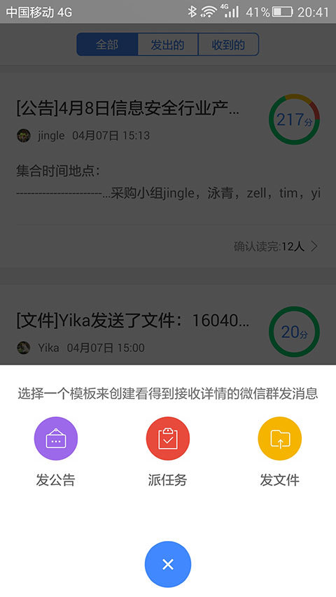 3.公告可以查看阅读状况,文件可以查看下载情况,任务可以查看接受/完成状况。