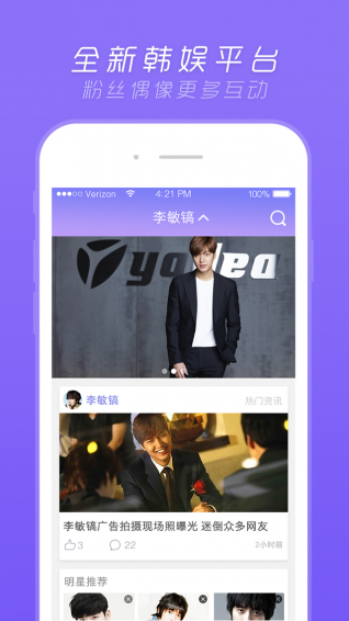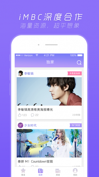 来看星app是一款为追星一族打造的手机社交软件,方便粉丝们及时得知偶像的最新动态,随时随地关注韩娱乐圈最新动向。还有粉丝专属社交圈,课余其他粉丝们互动交流,分享偶像的新鲜事。