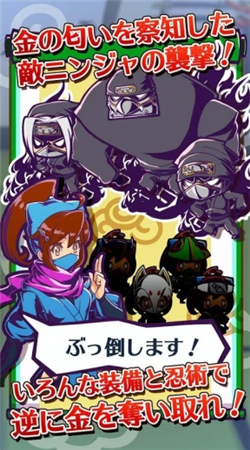 女儿的忍者之路是一款画面非常精美带有复古风格以忍者为题材的模拟养成游戏,在游戏中玩家需要控制忍者完成一系列的忍术操作来获得奖励。忍者用忍术赚钱!这是一个忍者父女的故事。有一天,父亲回来告诉女儿。“怎么办!钱不归还就要被斩首了”女儿发誓苦练忍术“苦无”为父亲还债!快来下载游戏试试吧!