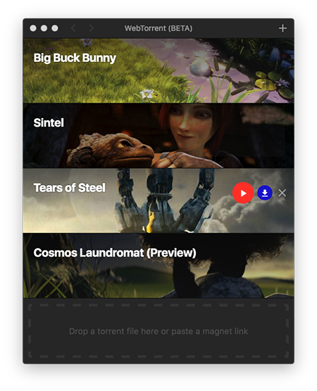WebTorrent Mac版是Mac系统下的一款BT种子即时播放、下载软件,有了WebTorrent Mac版你可以轻松在线观看和下载BT种子。WebTorrent的界面非常简洁美观,软件自带4个测试文件,都是1080P高清的视频,当然,你也可以自己讲BT种子文件拖入程序中下载。【软件特色】