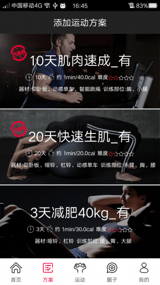4、“运动”界面区分“运动设备”和“运动方案”;