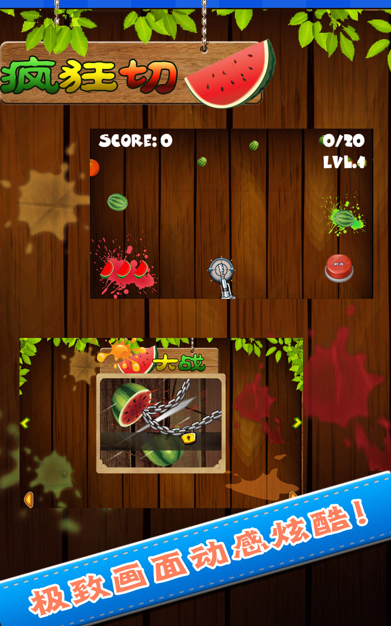 疯狂切西瓜是一款刺激好玩、容易上手却教人难以离手的动作游戏,玩家将会在游戏中扮演一个讨厌水果的忍者,用锋利的刀切开各种水果。西瓜,菠萝,猕猴桃,草莓,蓝莓,香蕉,苹果……你一定要赶在它们掉落之前把鼠标当成快刀将它们全部切掉!当中也会有炸弹迷惑你的眼睛,千万不要碰它!不然你就over了。当然还有多种游戏模式,更好玩! 土豪切西瓜是一款简单的休闲游戏,目的只有一个——砍水果!屏幕上会不断跳出各种水果--西瓜,凤梨,猕猴桃,草莓,蓝莓,香蕉,苹果等等---在它们掉落之前要快速的全部砍掉!千万别砍到炸弹!不然就over了。还有时间模式没有炸弹,全凭你的技巧了! 还有一定几率从屏幕左右侧弹出新奇水果很难切割。