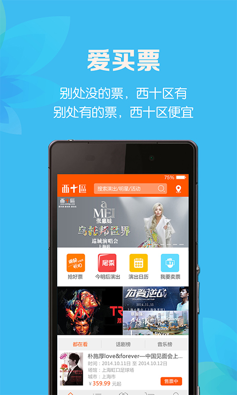4、爱买票,爱卖票,爱现场,西十区帮您用最便捷和最靠谱的方式走进文化演出和体育赛事现场!